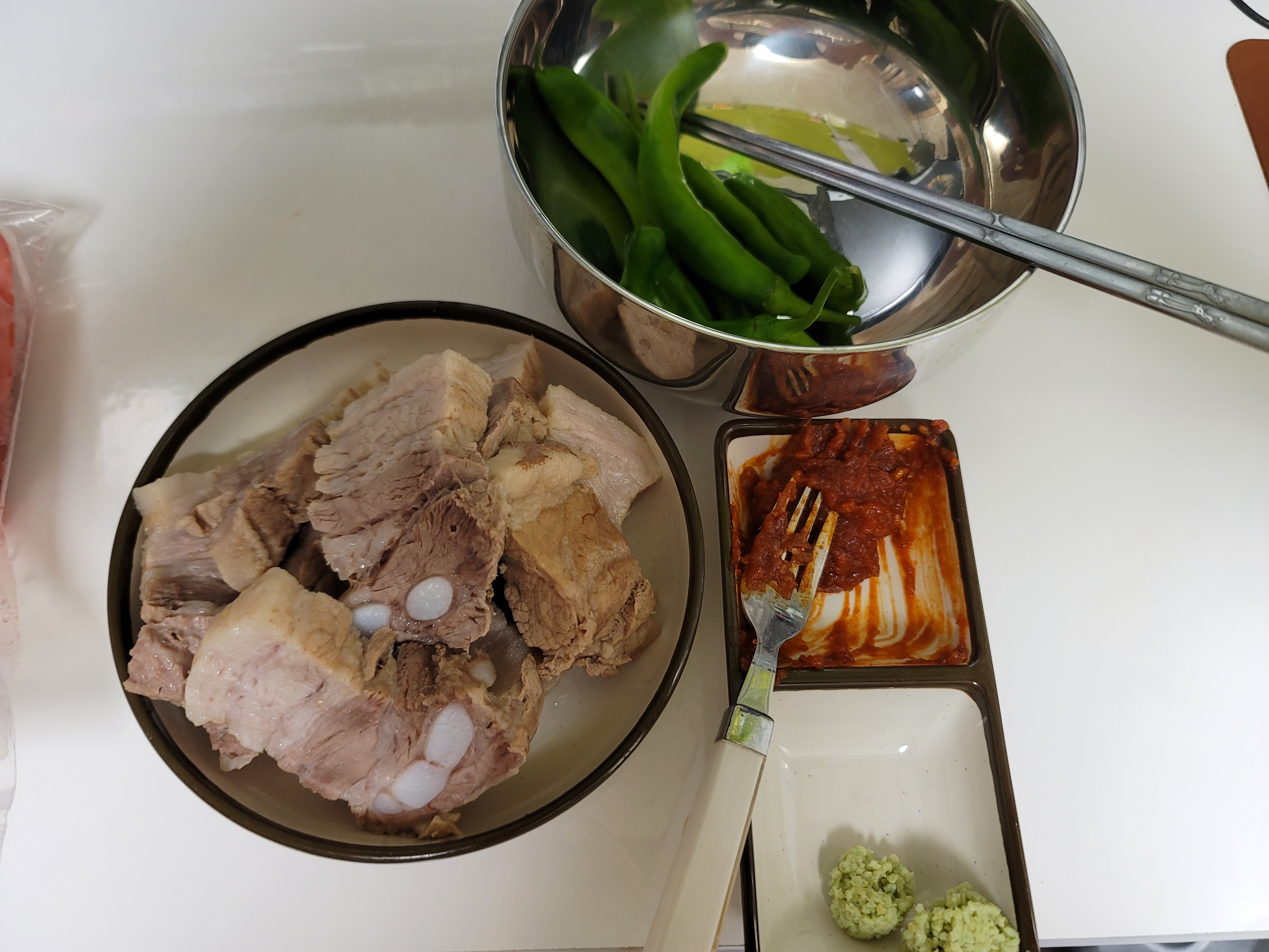 쌈장, 와사비, 풋고추(꽈리x) 랑 같이먹음 ㅎㅎ
