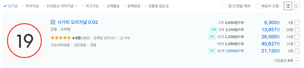 그다음 사가미 001 콘돔을 다량 구매하여 2천 원 대에 구매하는 것이 가장 절약하는 팁이라고 볼 수 있겠습니다. 사가미 002 콘돔의 경우 최저가 1천 원 정도에 구매 가능합니다.