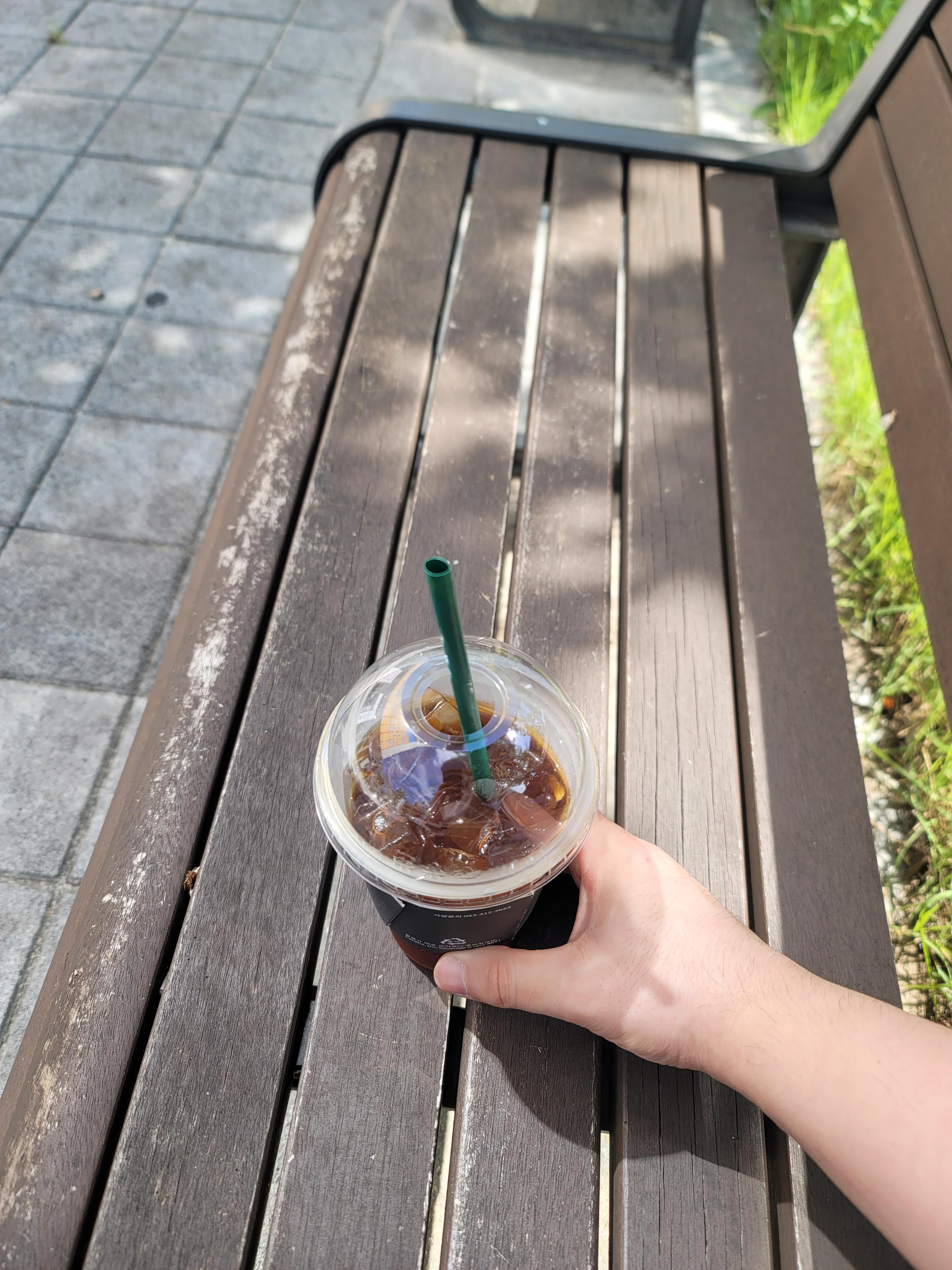 나른한 몸을 이끌고 약을 받고 커피를 샀다. 그 다음, 주변 벤치에서 땀흘리며 멍때리며 사색하는 시간을 가졌다ㅎㅎ