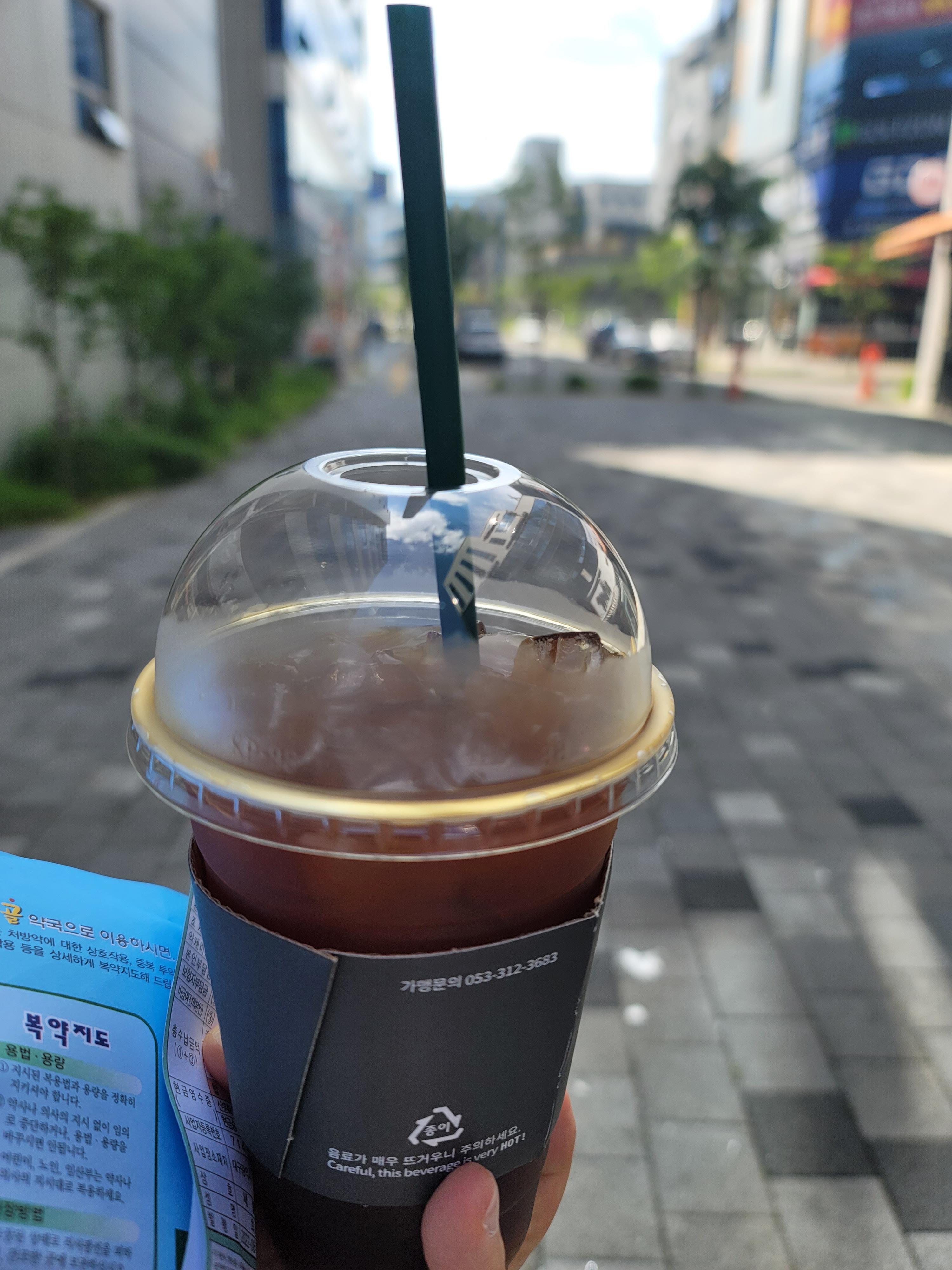 나른한 몸을 이끌고 약을 받고 커피를 샀다. 그 다음, 주변 벤치에서 땀흘리며 멍때리며 사색하는 시간을 가졌다ㅎㅎ
