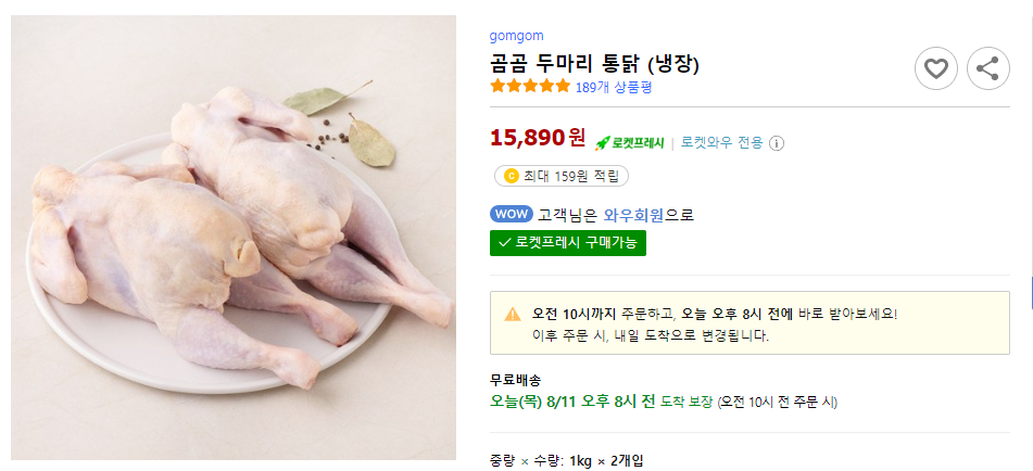 2022.7.26.(화) 중복에 백숙을 해먹기로 결정, 쿠팡에서 음 그나마 가성비 좋은 생닭을 사보았음.