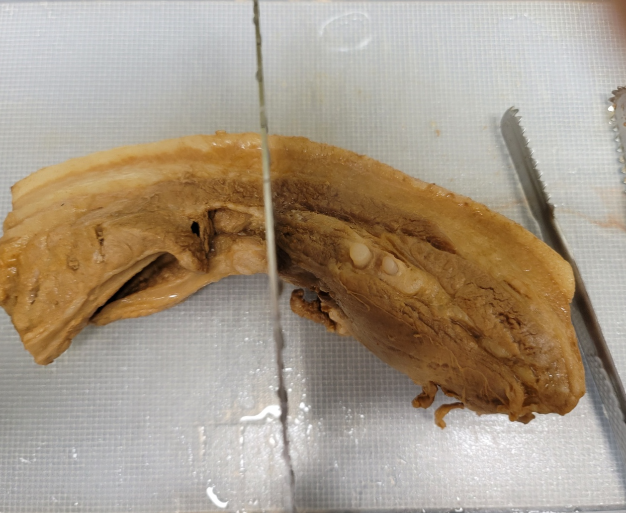 이것이 무엇인가? 정육점에서 보기만하던 삼겹살 통? 덩어리이다. 고기를 받게된 나는 생각보다 양이 너무 많아서 놀라버렸음. 그래서 고기를 잘랐다. 도마 두판이 꽉차있었는데 비계가 많은편