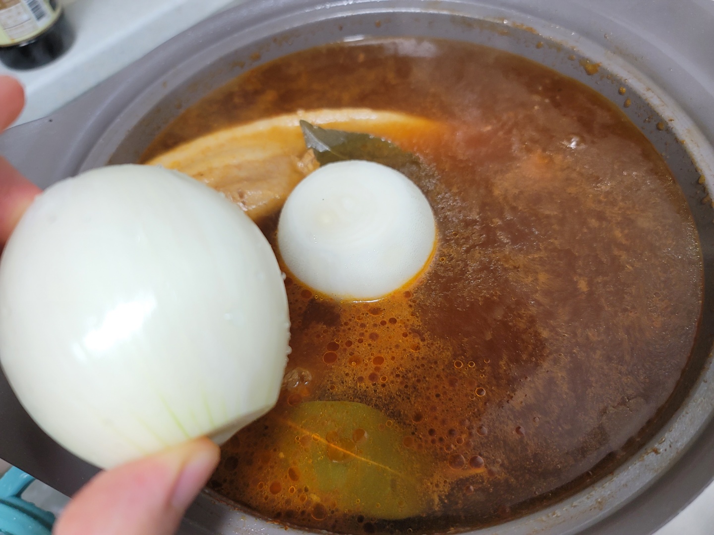 수육 삶는 물에 통양파 2개를 넣어주었습니다. 하나는 좀 부족해 보이더라구요 ㅎㅎ
